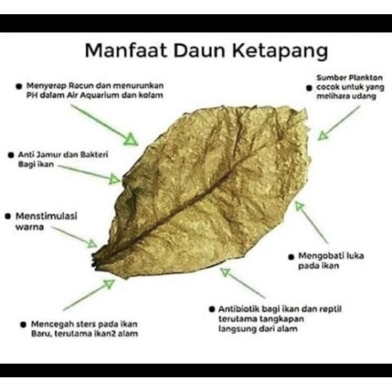 Ianya juga berupaya untuk membunuh bakteria bertindak sebagai anti fungus dan agen anti kulat meningkatkan tahap kualiti air dan bertindak sebagai bahan tonik bagi kegunaan di dalam akuarium. Manfaat Daun Ketapang Manfaat daun ketapang ini sudah cukup terkenal terutama di bidang budidaya ikan maupun ikan hias karena manfaatnya sangat bagus untuk menjaga kebersihan air untuk kesehatan ikan dan untuk. Seperti menyembuhkan luka mempercantik warna ikan cupang dan masih banyak yang lainnya.
